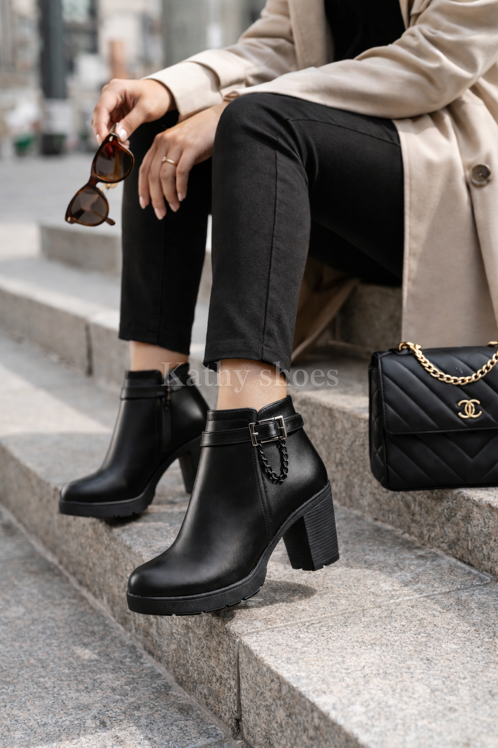 - ✔️ Diseño elegante con detalle de hebilla y cadena